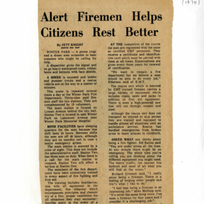 Winter Park Sun, 1957 and 1958: Fire Department News Articles