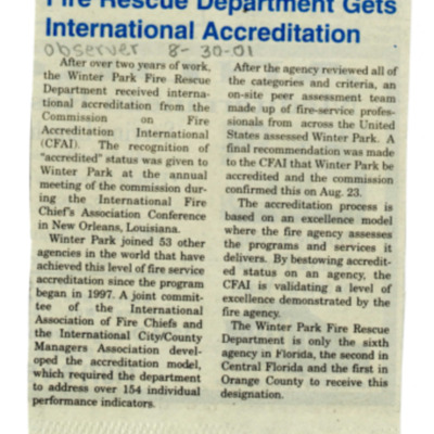 Winter Park Fire-Rescue Dept. Receives Life Safety Award