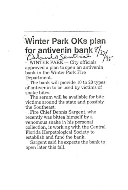 Winter Park OKs plan for antivenin bank